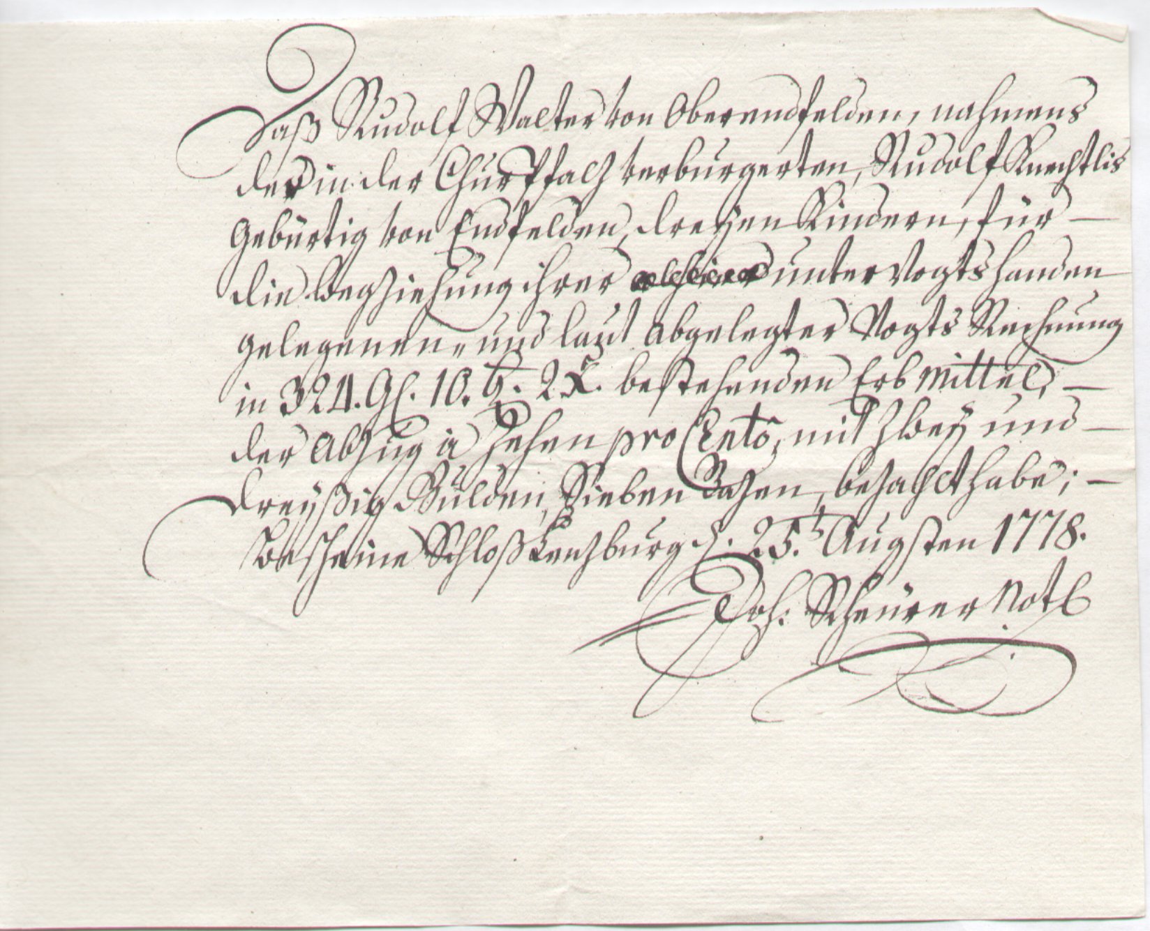 Erbschaft: Er selber kann nicht kommen und probiert nun abzuklären, welcher Weg sonst möglich wäre. Er sucht nach einem Weg, um das Bürgerrecht für seine Nachkommen zu sichern. Jacob Knechtlius, 3.5.1778 |